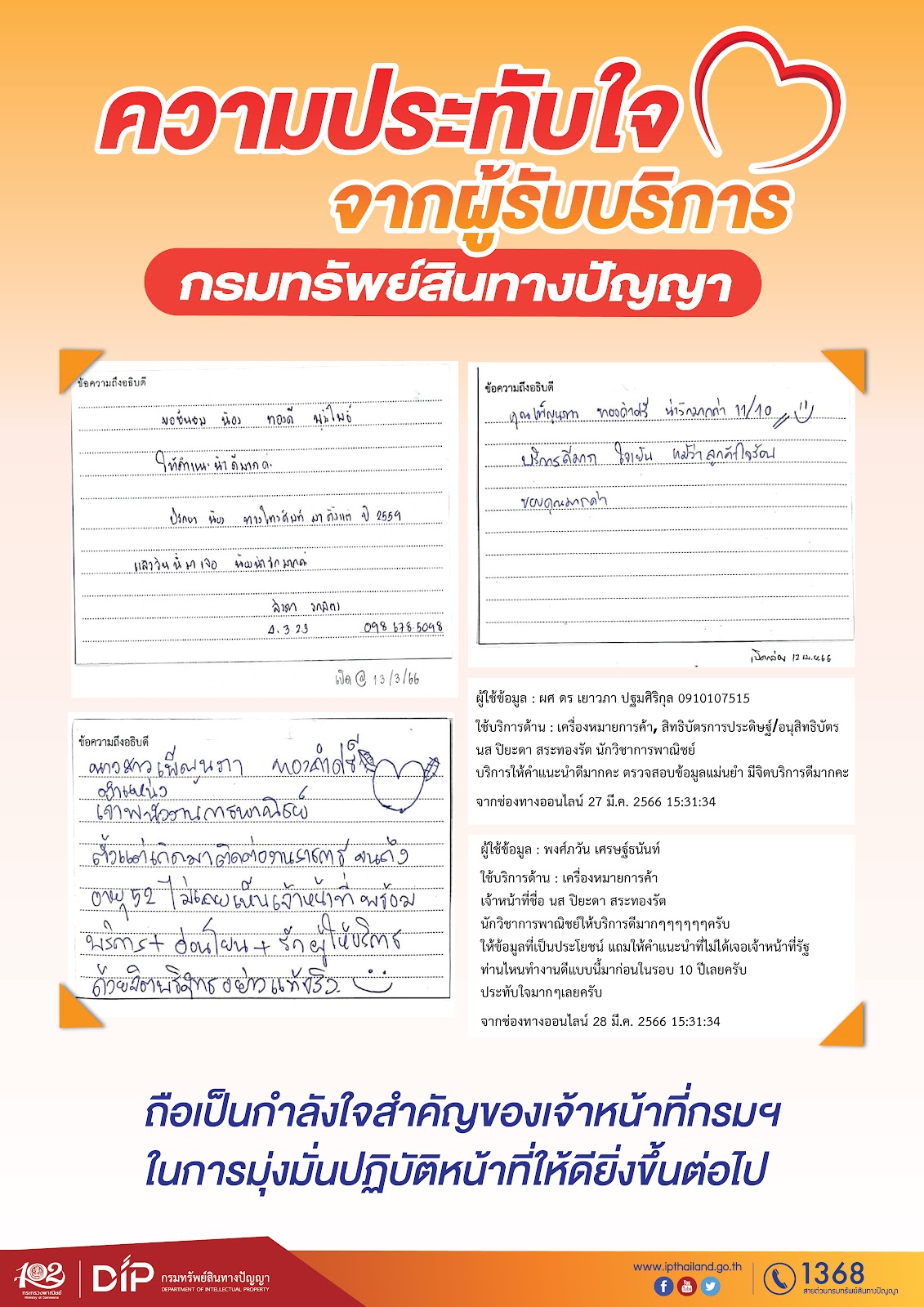 ความประทับใจ จากผู้รับบริการ กรมทรัพย์สินทางปัญญา Get link Facebook X Pinterest Email Other Apps April 11, 2023 Get link Facebook X Pinterest Email Other Apps Comments